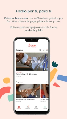 Base es una plataforma que ofrece rutinas alcanzables para todo el mundo, junto con una comunidad increíble que te apoya todos los días. En donde podrás conectar con gente, que cómo tú, busca alcanzar su mejor versión.