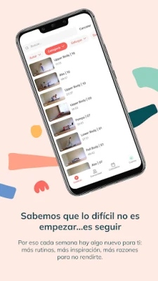 Podrás encontrar rutinas desde 5 minutos hasta 60. Rutinas de brazo, pompa, abdominales, full body, etc. Rutinas con equipo y sin equipo. Simplemente se adapta a lo QUE TU NECESITAS, para que puedas ir creciendo a tu propio ritmo, sin importar en donde estés.