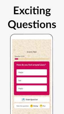 Share the result and testimony of your real friendship with your friends, colleagues, families and in turn ask them to share their result, and for this, all they have to do is answer the fun trivia quiz questions from the BFF test app.