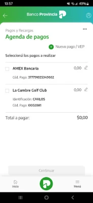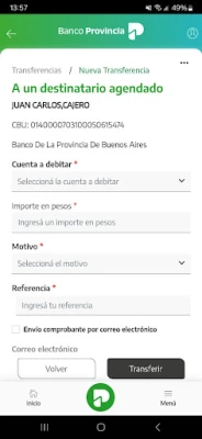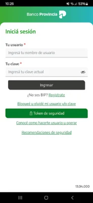 Unload the app in your Mobile and enter using your Banca Internet Provincia username and password. The first time, the system will ask you to accept Terms and Conditions.