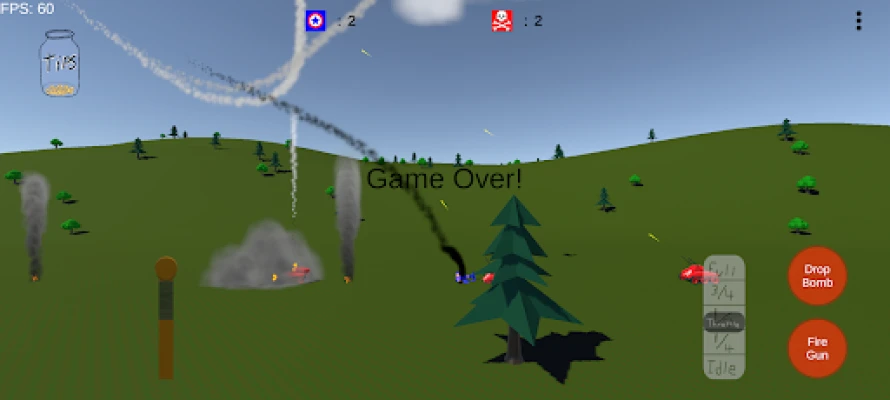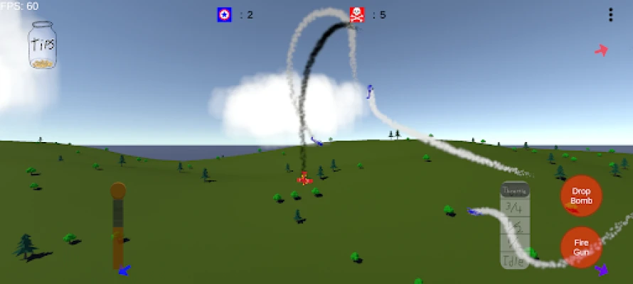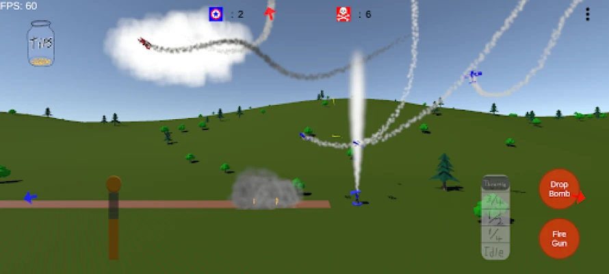 Stall, spin, and dive through the 2.5D chaos of Biplane Battle. Outmaneuver rival pilots to survive the gauntlet of aircraft and falling debris. Tear enemy planes apart with machine gun bursts and smash heavy armor with precision bombing runs from above. Clear the skies for bomber squadrons, open the path for advancing armor columns — all while evading relentless fire from deadly, ground based AA guns. Do you have what it takes to keep the sky blue?