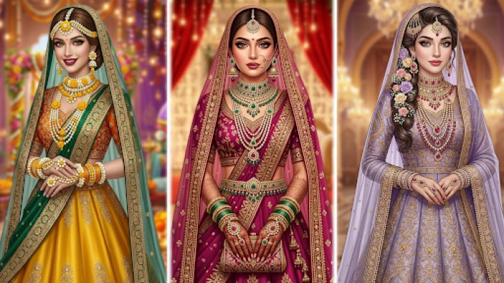 Start with a soothing bridal spa, clean the face, and prepare glowing skin in dulhan wali game. Choose perfect bridal makeup including lipstick, eye shadow, blush, and eye color. Create stunning looks for different wedding themes like royal, traditional, modern, and fairy-tale weddings in Bridal Makeup Wedding Dress Up Games for Girls.