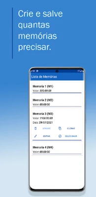 A nova Calculadora de Horas permite que salve inúmeros registros de memória com uma nova interface para editar o nome da memória adicionar uma descrição e até mesmo vincular uma data a memória selecionada.