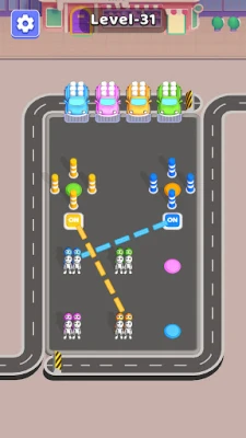 Play this addictive and puzzle game ‘Car Jam 3D : Parking Fever’ with complete new logic. In Color Match Car Parking game players must match passengers on a board to their corresponding colored cars in a parking area. The goal is to efficiently guide each passenger to their correct car by drawing paths, ensuring no collisions occur, and adhering to a first-come, first-out principle.