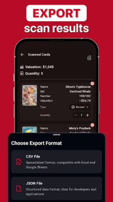 - Instant Card Scanning – Quickly scan trading cards to retrieve detailed info like name, rarity, and estimated market value.