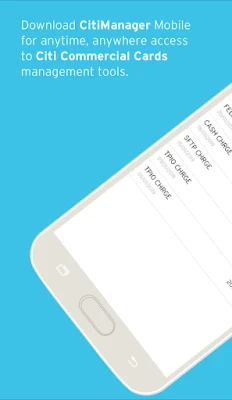 The CitiManager App for Citi Commercial Cards enables you to use your smartphone or tablet to access key account data on the go for your corporate card. Within the app you can view your statement information, balances, available credit, and more. Enhanced security measures include biometric authentication and one-time password (OTP) for login where available. In order to provide users with the quickest and most convenient experience possible, the CitiManager App provides all the basic features for corporate cardholders. Specifically, all cardholders can: