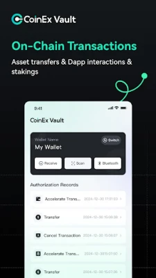 CoinEx Vault App takes your offline mobile device as a cold wallet carrier to help you securely store and manage multi-chain cryptocurrency assets and monitor account activities. Simply create an account on the official website for management, and use this App for approval, you can manage large amount of assets, collaborate with your team, and make convenient transactions.