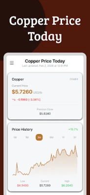 Track real-time copper prices with live COMEX data at your fingertips. Whether you are a metal trader, scrap dealer, or simply curious about copper per pound value, this app delivers accurate pricing information instantly.