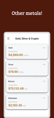 Beyond copper, track live prices for gold (XAU), silver (XAG), Bitcoin (BTC), and Ethereum (ETH). All major commodities and cryptocurrencies in one convenient app.