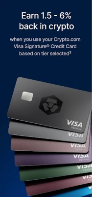 Crypto.com Visa Signature® Credit Card Accounts are issued by Comenity Capital Bank pursuant to a license from Visa U.S.A. Inc. Visa is a registered trademark of Visa International Service Association and used under license.