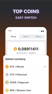 With CT Pool, you can choose from major cryptocurrencies, including Bitcoin (BTC), Ethereum (ETH), Dogecoin (DOGE), Solana (SOL), Toncoin (TON), and more. Switch between coins easily and mine the way you like.