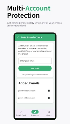 Monitor your email accounts for potential leaks. Get instant alerts if your passwords or emails are compromised, so you can secure your accounts before attackers exploit them.