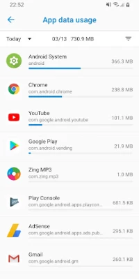 FEATURES * Notification display mobile and WiFi data on notification. * Data tracker display daily data of each app when you open it. * Data warning show warning if the data usage over limit number you set. * App data usage display data for apps for a period of time.