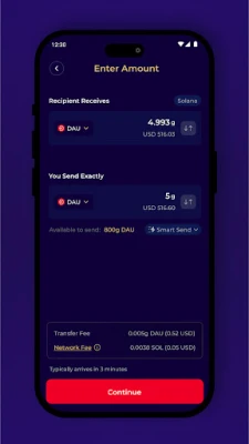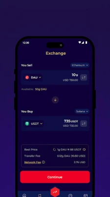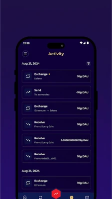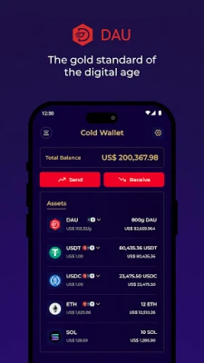 The app has a user-friendly interface that makes it easy to securely view, store, send and receive DAU and hundreds of other digital assets. The app also allows you to store your contacts and view real time price charts for all the assets in your wallet.