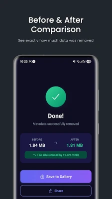 • Save cleaned photos to gallery or share directly