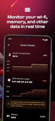 - Device Monitor: Monitor stats and factors that can affect your online gameplay, like device battery, memory, Wi-Fi signal, and device temperature.