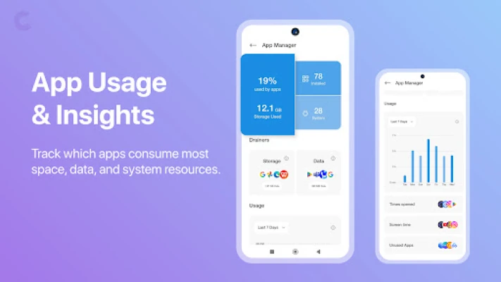 Track which apps use the most space or are rarely opened. Identify storage-hungry or unused apps and remove them easily to free up space and keep your phone organized.