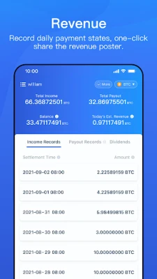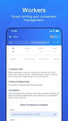The f2pool app offers a simple way for everyone to manage their mining operation. Conveniently manage your mining machines, view your revenue, and even utilize our one-click button to switch between logged-in and anonymous mining. Miners can access every function of the website through the app, including the ability to set up custom alerts for any worker or group.