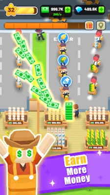 Click, tap, and upgrade your buildings to earn cash. Hire workers to help manage your business. Tend your farmer's team and sell your goods to the farmer's market for profit!