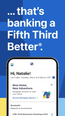 We are committed to protecting the privacy of your financial information. When you use the Fifth Third Mobile Banking app, all of your information is encrypted to help prevent unauthorized access. See our Online Privacy Policy at 53.com/privacy-security for more information.