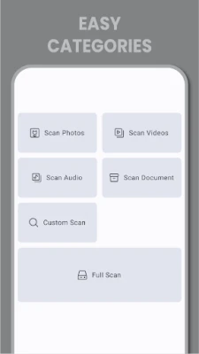 Use this option to scan for images, videos, audio or documents independently depending upon your need. Got many photos but don't want to scan through your documents? Just use the Scan Photos option - easy!