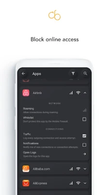 • Notifies you when an app tries to access the Internet
