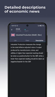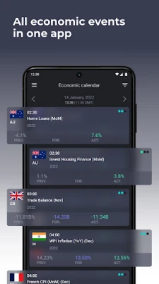 Forex economic calendar is a mobile application that is essential for a Forex trader in order to track, analyze and stay up to date on all market events on the move. Would you like to be notified of the latest economic news? Simply customize the alert and receive up-to-date push notifications in real time. In addition, you can adjust the settings to filter the news feed - both in terms of relevance and impact level. Select only those indicators that directly affect the trading instruments of your choice (for example, EUR, USD, or Gold).