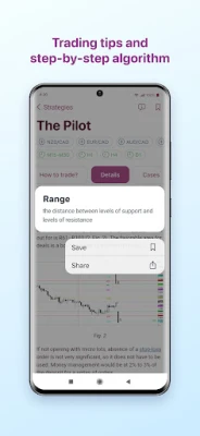 📲Our app contains a variety of trading tactics, from basic strategies for beginners to sophisticated ones. You will learn about such diverse strategies as martingale and scalping as well as indicator and indicator-free trading. They can be found on the Strategies page and contain a brief description along with a user guide. The theoretical concepts are explained by practical cases, so even the most complex strategy is easy to understand. 🥇