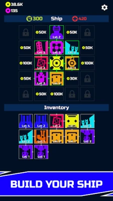 ✔️ Collect coins and resources by destroying ships and alien blocks.