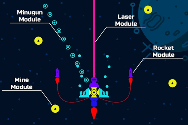 ✔️ Control a customizable space game ship and upgrade it with powerful weapons.