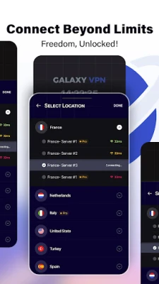 Galaxy VPN is a powerful, free, and high-speed VPN for Android. Fully compatible with Hamrah Aval, Irancell, Rightel, Telecommunication Networks, and Home Internet, Galaxy VPN lets you unblock websites, bypass geo-restrictions, and protect your online privacy — all with just one tap.