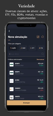 Escolha os ativos financeiros (ações, BDRs, metais, fundos imobiliários, moedas, cryptomoedas) e utilize nosso algoritmo baseado em Inteligência Artificial para simular as Carteiras cuja alocação (%) dos ativos vão proporcionar ao seu Investimento o Máximo Retorno e o Menor Risco .