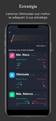 Selecione uma das carteiras simuladas, defina os preços dos ativos e acompanhe o valor a rentabilidade delas graficamente.