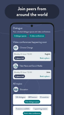 As you explore diverse global topics, such as Climate Change, Social Media and Fake News, Hate Speech Online, Identity and Belonging, the Rights of Girls and Women, and many more, you'll be able to share your perspectives and learn from thousands of international peers in live Video Conferences and Dialogue Spaces. Prepare to broaden your horizons and gain fresh insights into the world around you.