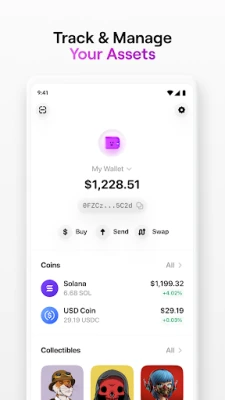 Glow is the easiest way to get started on Solana. Set up your wallet in seconds to manage your assets, browse coins and collectibles, and transact effortlessly.