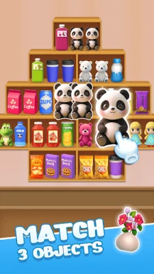 ✨ Drag and drop 3D items to several shelves for triple-match