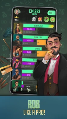 Your team will help you to steal all money and be the richest human ever lived. Upgrade them to get more profit and speed of stealing money.