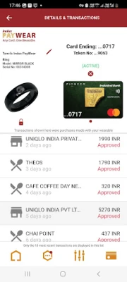 Manage your Indus PayWear wearable with this App and experience the whole new world of payments with just a wave. Indus PayWear App allows you to set up your IndusInd Bank Wearable - Mobile Sticker, Watch Clasp or a Ring, for safe, convenient and faster contactless transactions using your IndusInd Bank Debit Card, or Credit Card. Always be in control of your wearable with the Indus PayWear App to manage transactions, switch between Cards linked with the wearable, keep track of spends via wearable and more.