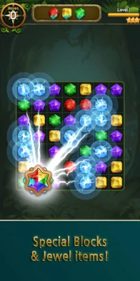 ♢ Match 4 jewels in a line to create special lightning. Lightning jewel can trigger a blast to destroy all jewels in a row or column.
