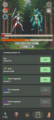 • Challenge yourself in three dungeon types: Experience, Gold, and Fragment dungeons