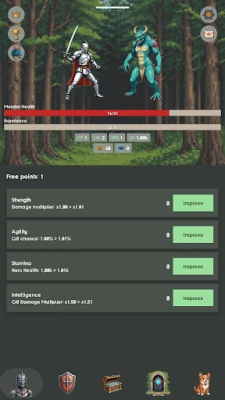 Watch your knight fight monsters automatically while you strategize upgrades. The battle never stops—even when you're offline! Return to find your hero has gained experience, gold, and leveled up.