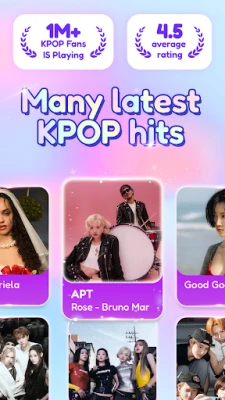 Play with the newest Kpop songs. The game is always updated with the most popular song from the most artists, girl bands, boy bands: Jung Kook, Black Pink, NewJeans, BTS, Big Bang, SNSD, Aespa, Stray Kids, Twice, ITZY, .... It's like having your own Kpop concert!