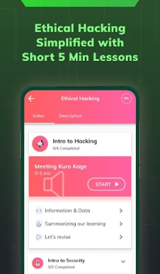 On this Ethical Hacking Learning app, you will be able to start with the basics of cybersecurity and hacking so that you can build your skills around it. You can build your hacking skills on the go from Hacking Tutorials on this app.