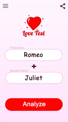 Remember, this app is all about fun and entertainment. While it’s not a scientific love test, it’s a playful way to spark conversations about love, compatibility, and relationships. Enjoy the experience and take the results lightly!
