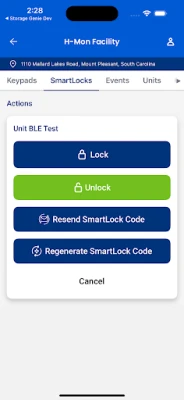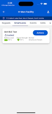 With a single login, the app grants users quick access to every self storage facility they manage. From the user-friendly facility screen, your manager can open gates and doors, view access events, see tenant and unit info, and view visitors onsite. Efficient facility management at the tap of a button — it will feel like magic.