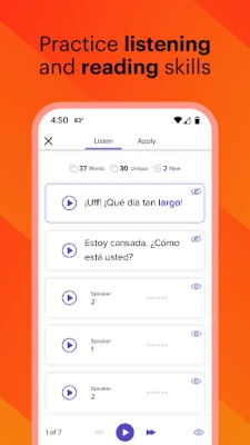Enhance comprehension with interactive listening and reading activities and bolster your learning with personalized daily reviews.
