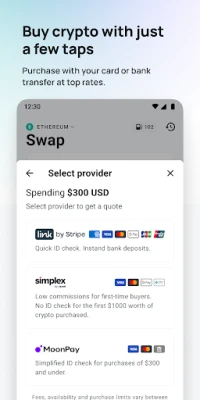 ✨ Buy cryptocurrency like Ethereum (ETH) and BTC with a few taps using your bank card.