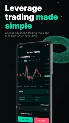 Trade with up to 100x leverage on perpetual futures contracts. Set take-profit and stop-loss orders to manage your risk effectively.