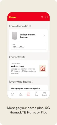 Your Mobile and Home Internet accounts are just a tap away. Quickly manage your devices, make plan changes, view usage and discover everything your plan has to offer. Keep track of all your Home Internet accounts, 5G Home. LTE Home and Fios.