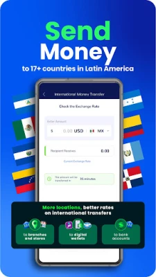 Send money to Bolivia, Brazil, Colombia, Ecuador, El Salvador, Guatemala, Honduras, Mexico, Nicaragua, Panama, Peru, Dominican Republic, and Venezuela.